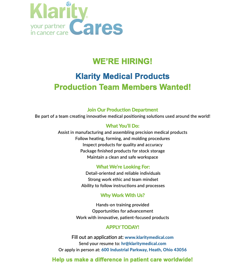 Please fill out an employment form below and send to hr@klaritymedical.com